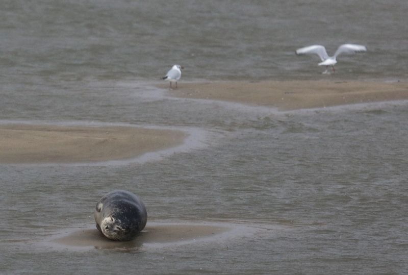 C'est le week-end des 18, 19 et 20 novembre 2016 que nous avions choisi pour découvrir la Baie de Somme, faute de trouver un hébergement pour le week-end précédent... Pas de chance, nous ne pouvions pas avoir pire temps !. Lorsque j'ai pris les photos des phoques, il pleuvait des cordes et le vent en plus !, je suis revenu à la voiture archi trempé, avec un zoom qu'il a fallu sécher au sèche cheveux le soir à l'hôtel. Les photos sont prises avec un zoom 100-400 Canon.