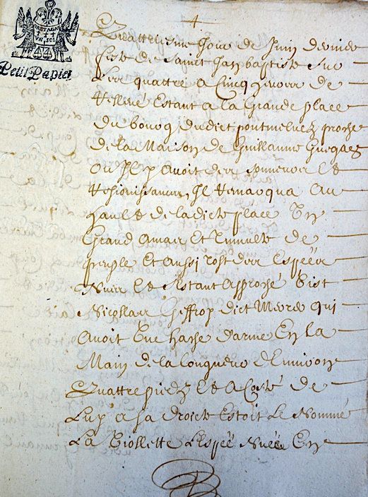 L’action prend place le 24 Juin 1669, jour de la fête de Saint Jan. Une grande assemblée d’habitants s’est réunie sur la grande place du Bourg de Pont-Melvez, pour fêter cette journée. Où l'on apprend que les enfants de Jacques Grimault de la Noé ont un précepteur nommé Kergoas... Où l'on apprend aussi que Jacques Grimault utilise son épée et que 3 enfants (les ainés) sont présents, au moins 6 autres enfants suivront...